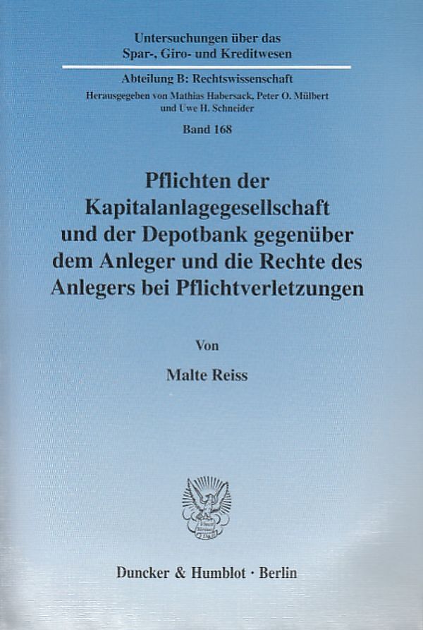 Pflichten der Kapitalanlagegesellschaft und der Depotbank gegenüber dem Anleger und die Rechte des Anlegers bei Pflichtverletzungen.