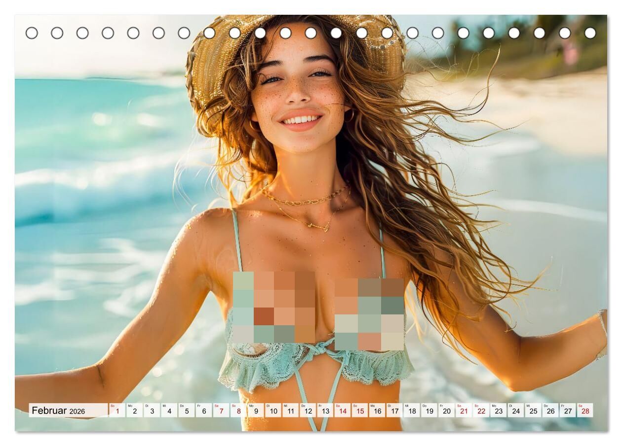 Sonne, Sand und Meer dieser KI-generierte Kalender zeigt lebensfrohe, attraktive, erotische Frauen, die den Sommer in vollen Zügen genießen. Ob spielerisch in den Wellen, entspannt am Strand oder leicht bekleidet in der Gischt jede Szene fängt das Gefühl von F...
