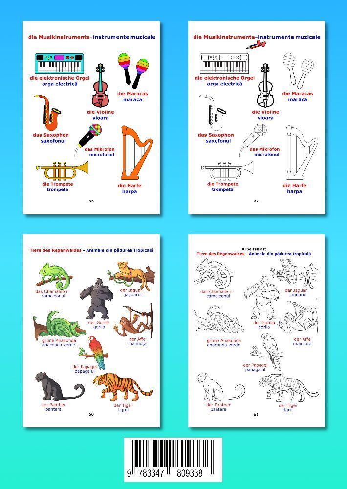 Dieses Buch ist ein idealer Begleiter für Anfänger, die die rumänische Sprache erlernen möchten. Es enthält viele Bilder und Malvorlagen. Ziel ist es, das Erlernen der rumänischen Sprache zu vereinfachen und das Interesse an der Sprache zu wecken. Das Bildwört...