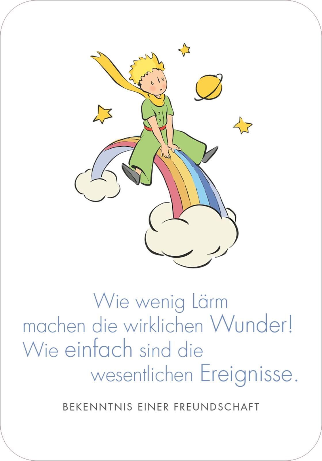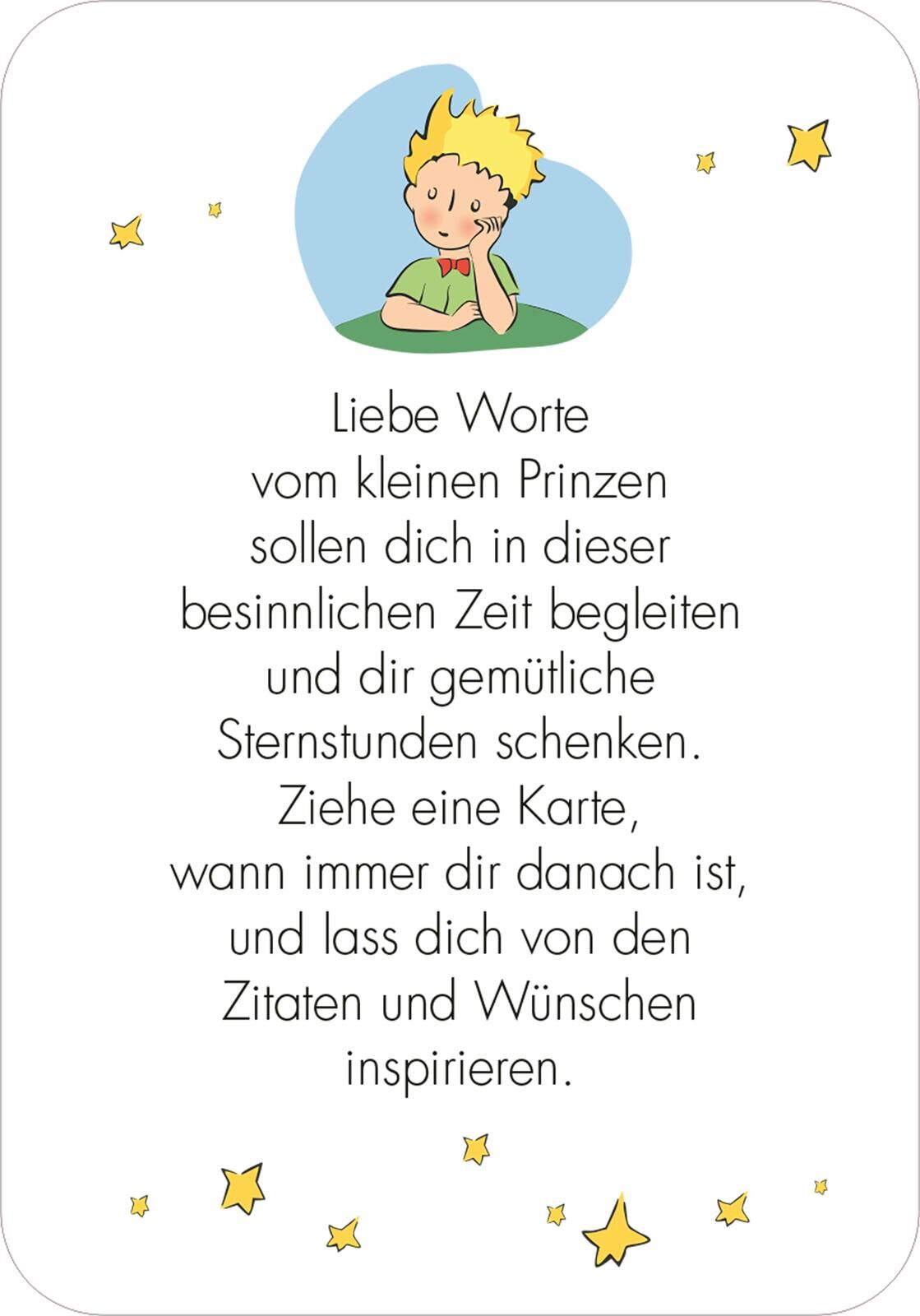 Mit dem kleinen Prinzen durch die Winterzeit: 50 besinnliche Kärtchen Man sieht nur mit dem Herzen gut ist das wohl bekannteste Zitat des französischen Schriftstellers Antoine de Saint-Exupéry. Ob es um das Sich-vertraut-Machen mit dem Fuchs geht oder um die ...