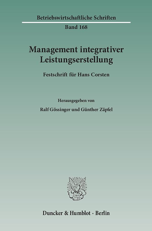 Anlässlich des 65. Geburtstages von Univ.-Prof. Dr. habil. Hans Corsten wird sein umfangreiches wissenschaftliches uvre in einer Festschrift gewürdigt. Die Beiträge greifen aktuelle Forschungstendenzen auf den Gebieten des Innovationsmanagement, Supply Chain M...Anlässlich des 65. Geburtstages von Univ.-Prof. Dr. habil. Hans Corsten wird sein umfangreiches wissenschaftliches uvre in einer Festschrift gewürdigt. Die Beiträge greifen aktuelle Forschungstendenzen auf den Gebieten des Innovationsmanagement, Supply Chain Management, Dienstleistungsmanagement, Produktionsplanung und -steuerung und Produktionscontrolling auf. Es werden Implikationen integrativer Leistungserstellung für die Allgemeine Betriebswirtschaftslehre abgeleitet und Ansätze zur Gestaltung, Erbringung und Messung der Leistung weiterentwickelt.