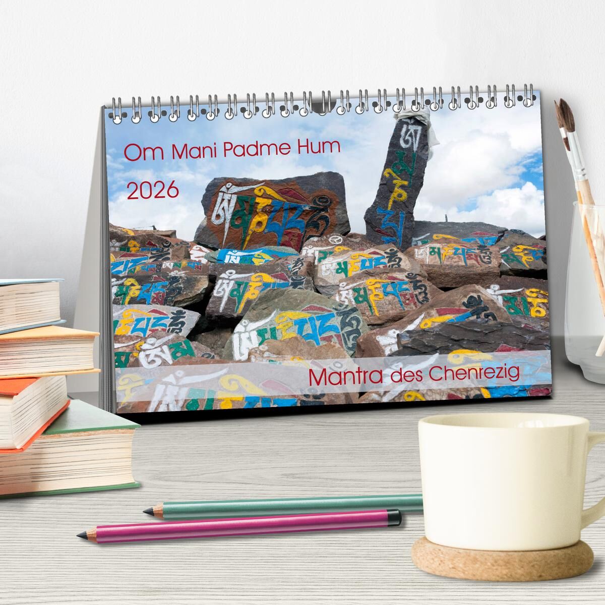 Om Mani Padme Hum Mantra des Chenrezig (Tischkalender 2026 DIN A5 quer), CALVENDO Monatskalender
