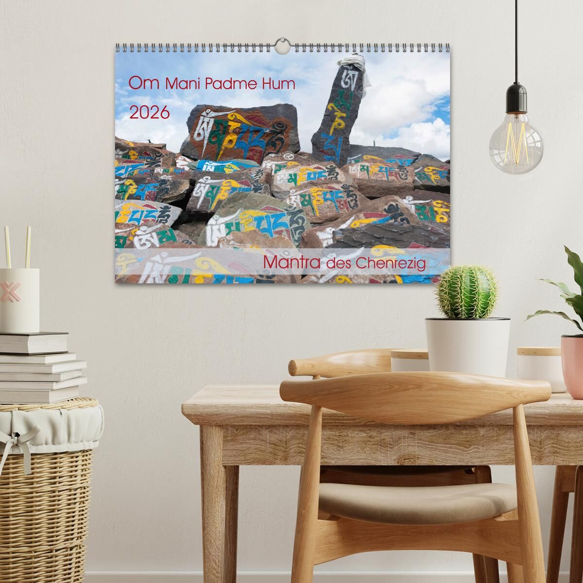 Om Mani Padme Hum Mantra des Chenrezig (Wandkalender 2026 DIN A3 quer), CALVENDO Monatskalender