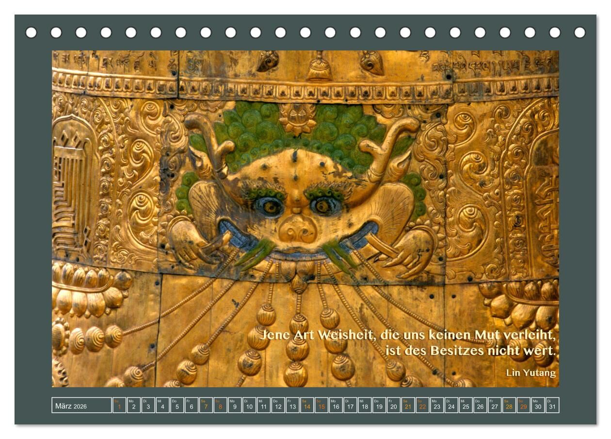 Dieser Kalender zeigt Fotos aus allen Teilen des historischen Tibets (Kham, Amdo, Ü, Tsang, Ngari) in Verbindung mit einem zu dem Bild passenden Sinnspruch.