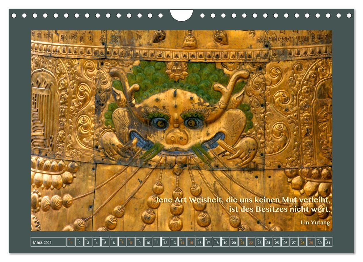 Dieser Kalender zeigt Fotos aus allen Teilen des historischen Tibets (Kham, Amdo, Ü, Tsang, Ngari) in Verbindung mit einem zu dem Bild passenden Sinnspruch.