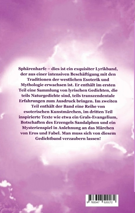 Sphärenharfe dies ist ein exquisiter Lyrikband, der aus einer intensiven Beschäftigung mit den Traditionen der westlichen Esoterik und Mythologie erwachsen ist. Er enthält im ersten Teil eine Sammlung von lyrischen Gedichten, die teils Naturgedichte sind, teil...