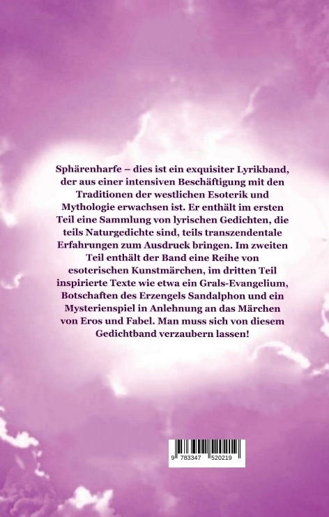 Sphärenharfe dies ist ein exquisiter Lyrikband, der aus einer intensiven Beschäftigung mit den Traditionen der westlichen Esoterik und Mythologie erwachsen ist. Er enthält im ersten Teil eine Sammlung von lyrischen Gedichten, die teils Naturgedichte sind, teil...