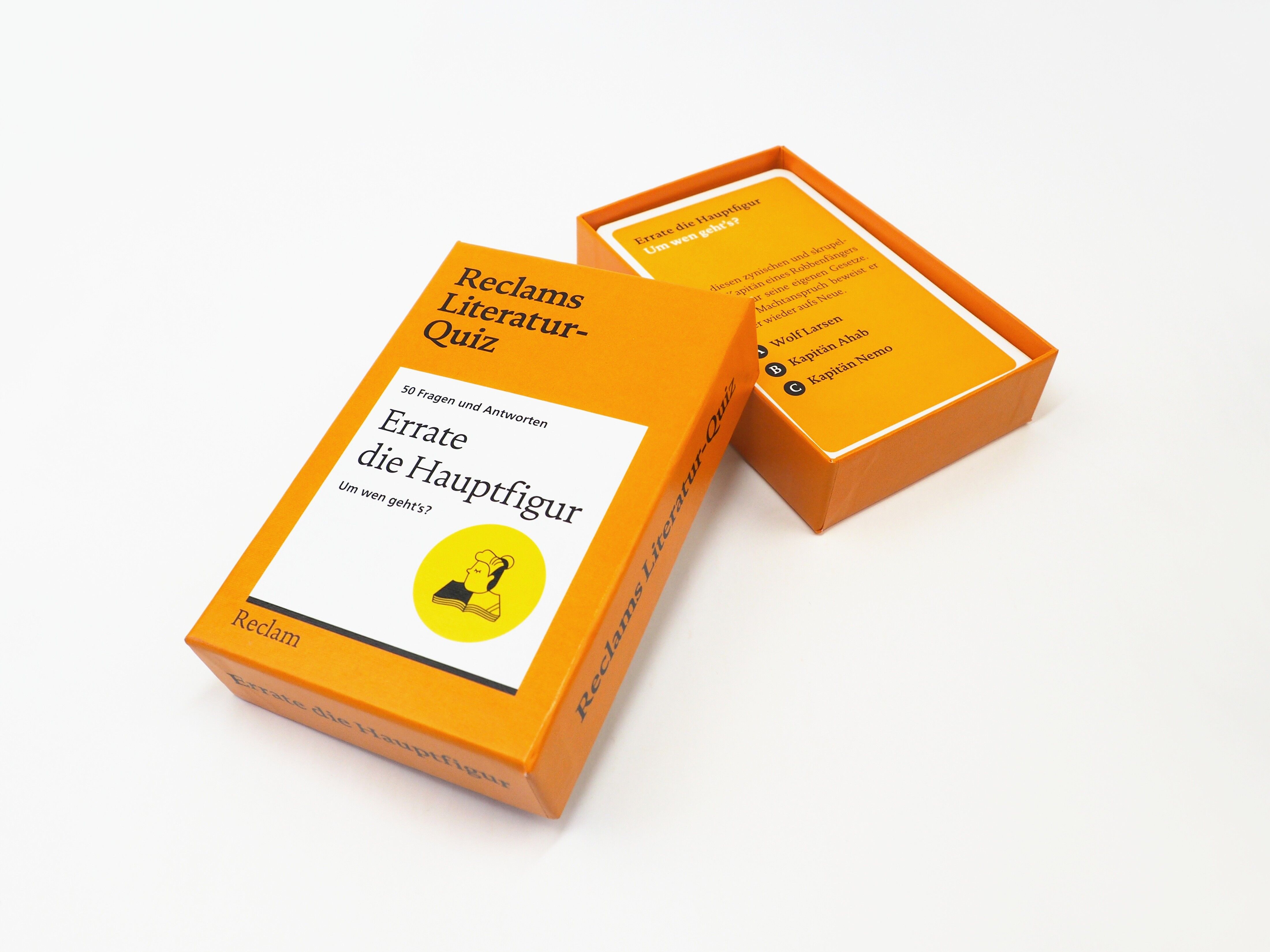 Hauptfiguren der Weltliteratur erraten mit Reclams Literatur-Quiz Welche Hauptfigur war Kapitän eines Robbenfängers? Und welcher mittellose Soldat wird aus Wahn und Verzweiflung zum Mörder? Diese und viele andere spannende Fragen warten in Reclams Literatur-Q...