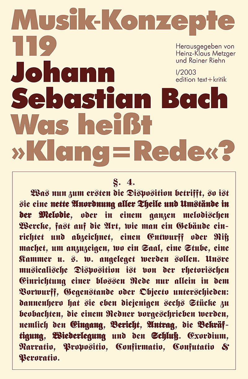 Johann Abraham Birnbaum, Dozent für Rhetorik und ein Freund Bachs, bezeugt, dass dieser »die Theile und Vortheile« der Rhetorik vollkommen kenne. Versucht man Birnbaums Zeugnis mit Inhalt zu füllen, dann ergeben sich erhebliche Schwierigkeiten. Einmal hat Bach...