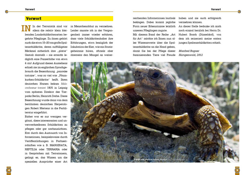 Nur etwa 15-20 cm groß wird die in der Terraristik heißbegehrte Spaltenschildkröte, deren auffälligstes Merkmal sicherlich ihre platte Gestalt darstellt sie erreicht lediglich eine Panzerhöhe von etwa 4 cm! Experte Manfred Rogner fasst den Wissensstand über di...