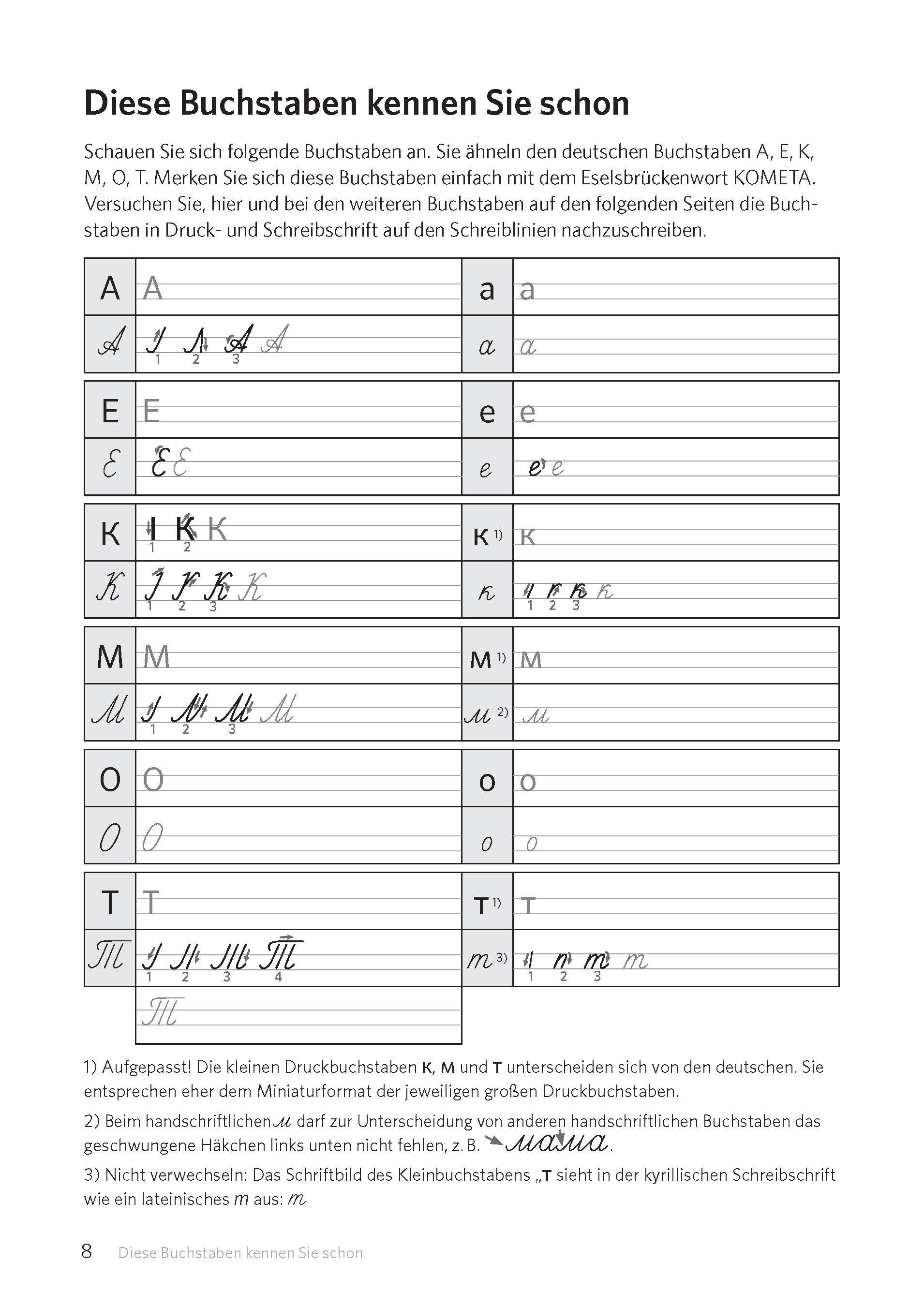 Russisch schreiben lernen leicht gemacht! Lernen Sie Schritt für Schritt das russische Alphabet vom einfachen Nachzeichnen bis zum selbständigen Schreiben ganzer Wörter. Pfeile für die Schreibrichtung und Nummerierungen zeigen Ihnen die einzelnen Schritte bei...