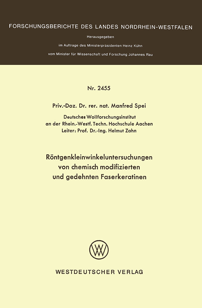 R5ntgenkleinwinkeluntersuchungen an lysin- und carboxylgruppenmar kierten Mohairfasern sowie an tensidbehandelten Mohair- und DNP Mohairfasern haben gezeigt, daB aile ionischen Seitenketten eine gemein same axiale Periodizitat von 39 'A aufweisen. 2. N...