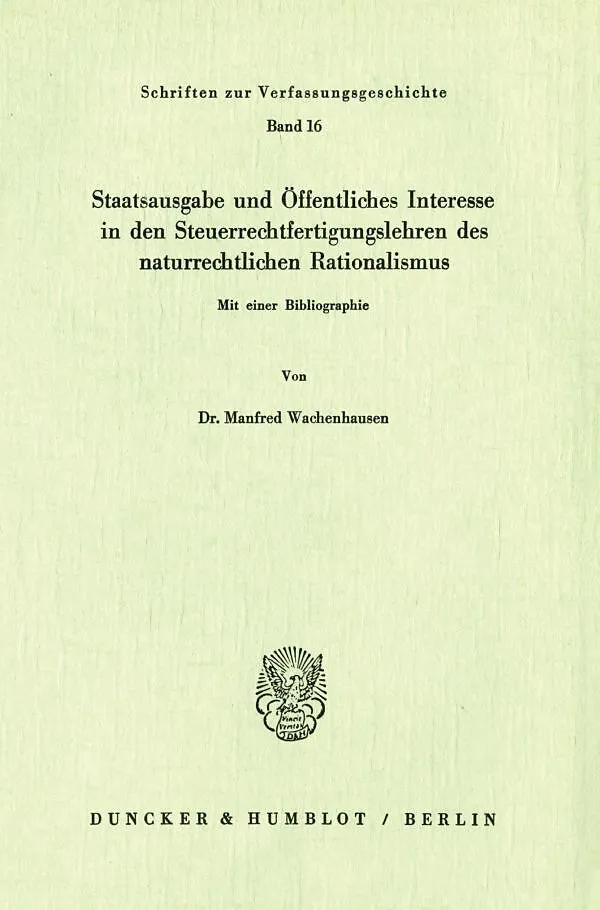 Staatsausgabe und Öffentliches Interesse in den Steuerrechtfertigungslehren des naturrechtlichen Rationalismus.