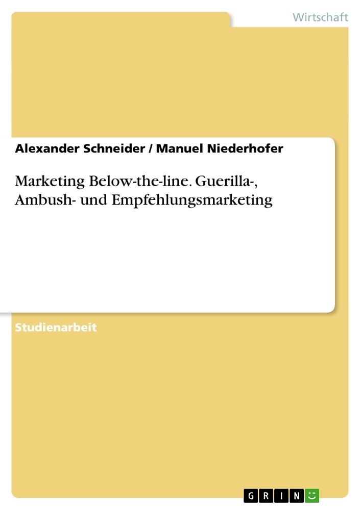 Studienarbeit aus dem Jahr 2006 im Fachbereich BWL - Offline-Marketing und Online-Marketing, Note: 1,0, Universität Augsburg (Lehrstuhl für Werbepsychologie und Konsumforschung), Veranstaltung: Seminar zu Werbepsychologie und Konsumforschung, Sprache: Deutsch,...