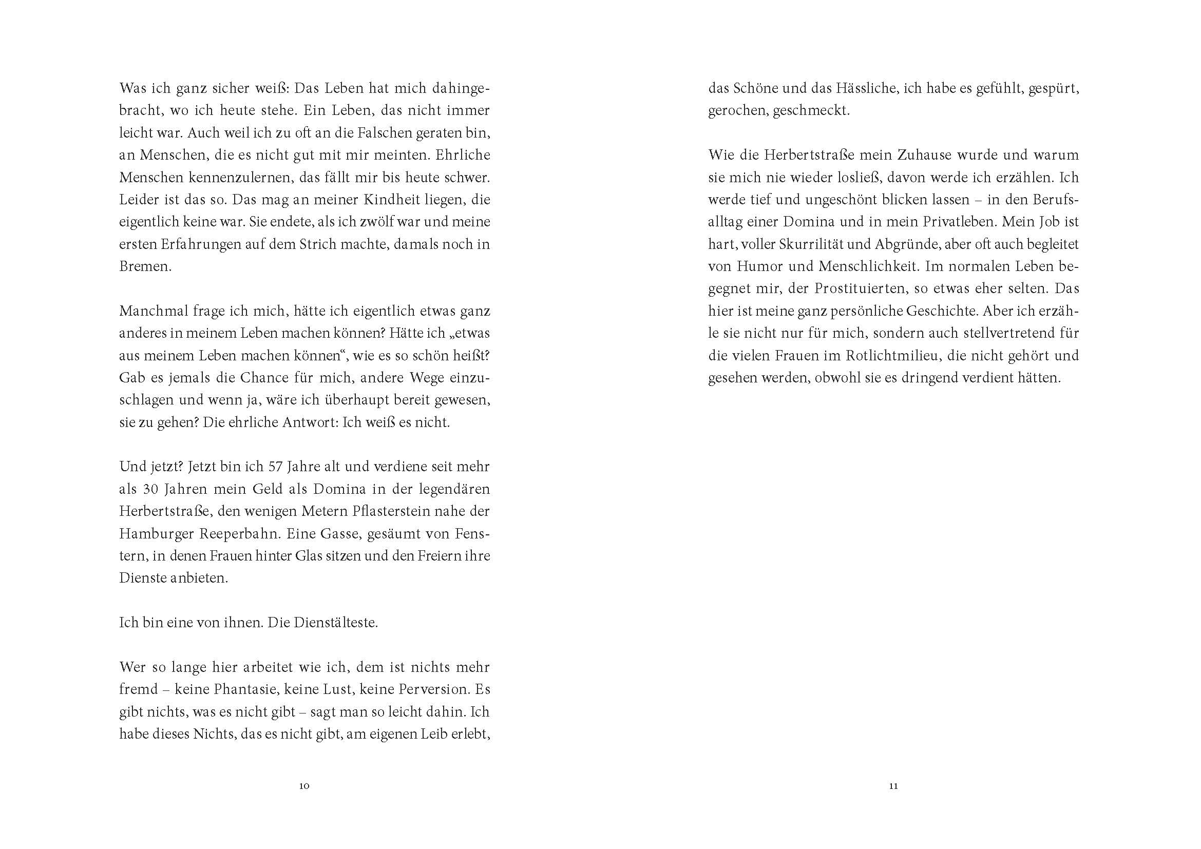 Die Herbertstraße, eine 60 Meter lange Gasse mitten im Hamburger Rotlichtbezirk, an den Zugängen begrenzt von Sichtblenden. In den Fenstern präsentieren sich die Prostituierten den flanierenden Freiern. Eine von ihnen ist Manuela Freitag, seit mehr als 30 Jah...