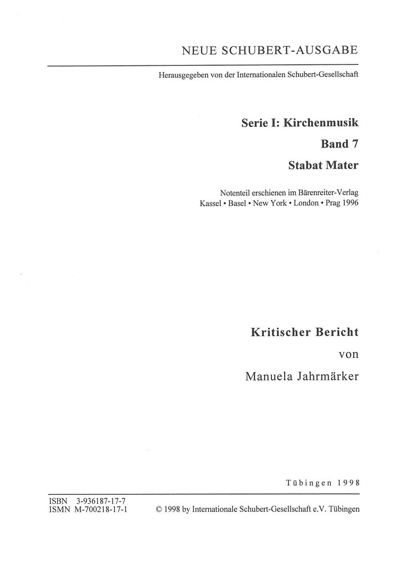 Neue Schubert-Ausgabe. Kritische Berichte / Kirchenmusik / Stabat mater