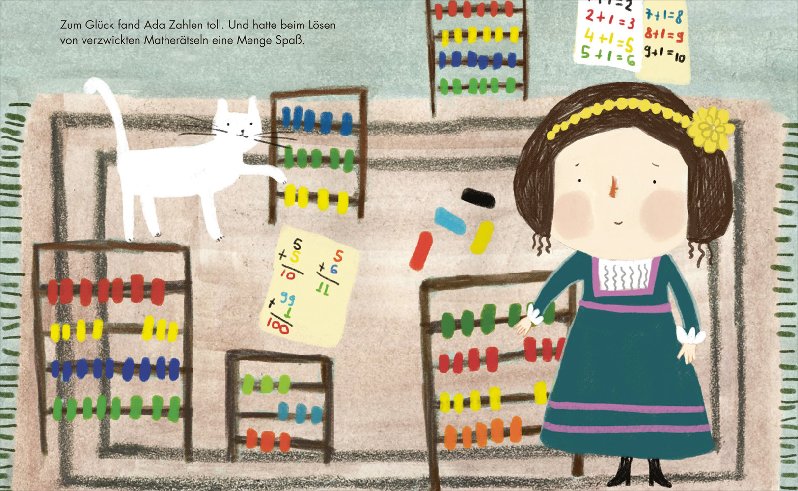 Ada war viel allein, als sie klein war. Meistens spielte sie mit ihrer Lieblingskatze Mrs Puff und träumte von Maschinen, die fliegen können. Während einer langen Krankheit verbrachte sie viel Zeit im Bett und studierte Zahlen. Als sie später einen Mathematik...