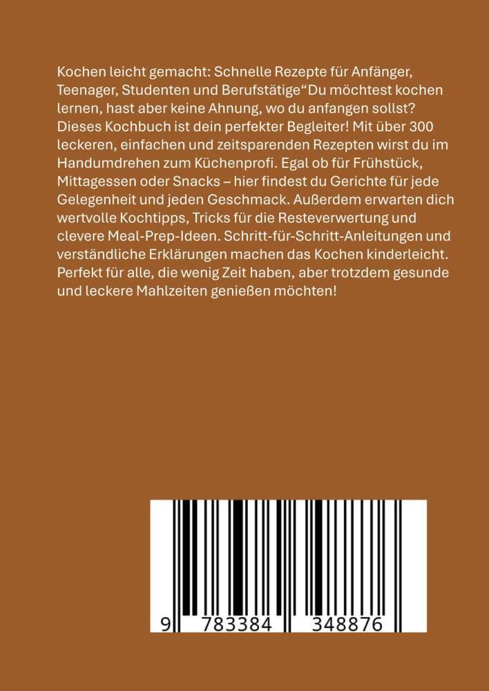 Kochen für Anfänger war noch nie so einfach! Dieses Kochbuch richtet sich an Anfänger, Teenager, Studenten und Berufstätige, die unkomplizierte, leckere und schnelle Gerichte zaubern möchten. Mit mehr als 300 Rezepten, die ohne viel Aufwand und mit nur wenigen...