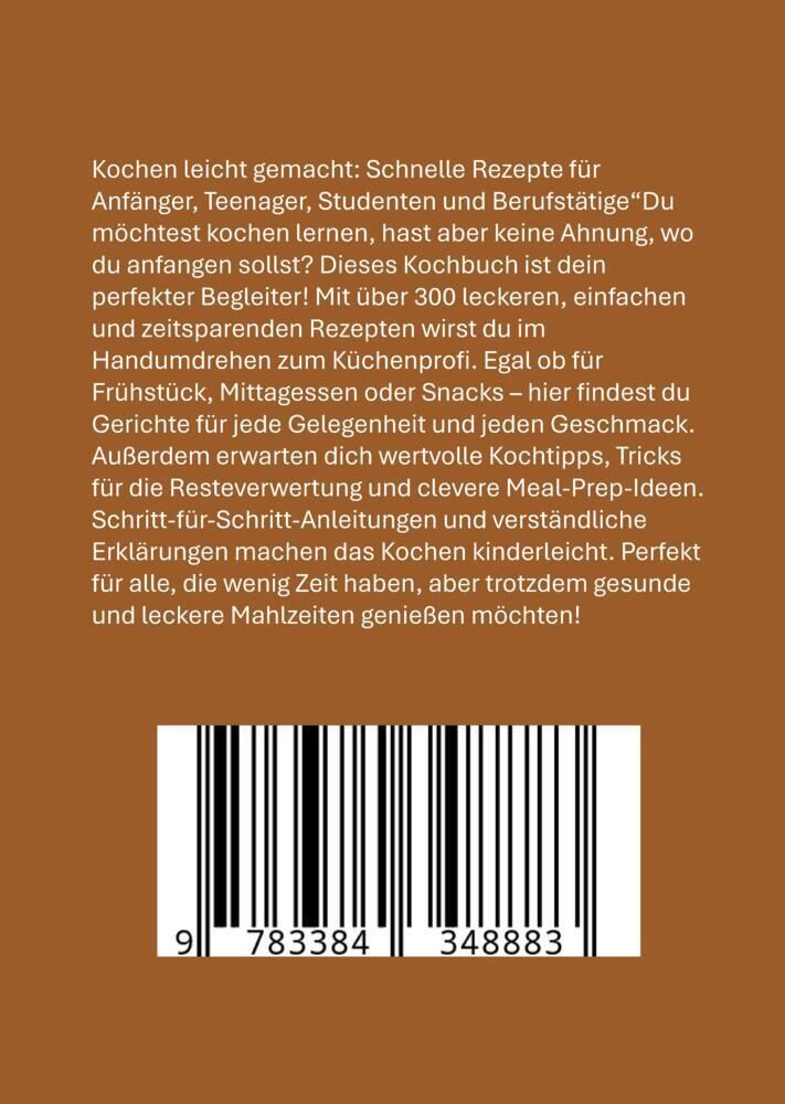 Kochen für Anfänger war noch nie so einfach! Dieses Kochbuch richtet sich an Anfänger, Teenager, Studenten und Berufstätige, die unkomplizierte, leckere und schnelle Gerichte zaubern möchten. Mit mehr als 300 Rezepten, die ohne viel Aufwand und mit nur wenigen...