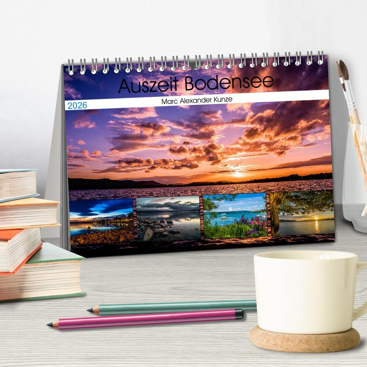 Nehmen Sie sich eine Auszeit und freuen Sie sich jeden Monat aufs Neue an Impressionen vom Bodensee mit schönen Farbspielen und faszinierenden Stimmungen