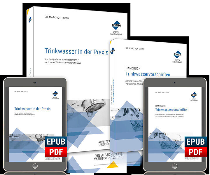 Neben der aktuellen Trinkwasserverordnung gibt es eine Vielzahl an verschiedenen Regelwerken zu Trinkwasser-Installationen, Wasserqualität oder Aufbereitung. Für Planer, Umsetzer und Prüfer bedeutet das einen großen Rechercheaufwand bei den strengen Vorgaben. ...Neben der aktuellen Trinkwasserverordnung gibt es eine Vielzahl an verschiedenen Regelwerken zu Trinkwasser-Installationen, Wasserqualität oder Aufbereitung. Für Planer, Umsetzer und Prüfer bedeutet das einen großen Rechercheaufwand bei den strengen Vorgaben. Das Trinkwasserpaket mit den Handbüchern "Trinkwasser in der Praxis" und "Die Trinkwasservorschriften" unterstützt bei der fachgerechten Umsetzung dieser Verordnungs- und Normauflagen.
