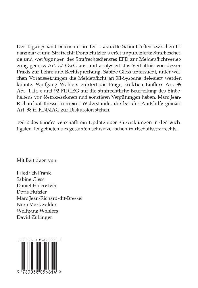 Der Tagungsband beleuchtet in Teil 1 aktuelle Schnittstellen zwischen Finanzmarkt und Strafrecht: Doris Hutzler wertet unpublizierte Strafbescheide und -verfügungen des Strafrechtsdienstes EFD zur Meldepflichtverletzung gemäss Art. 37 GwG aus und analysiert da...