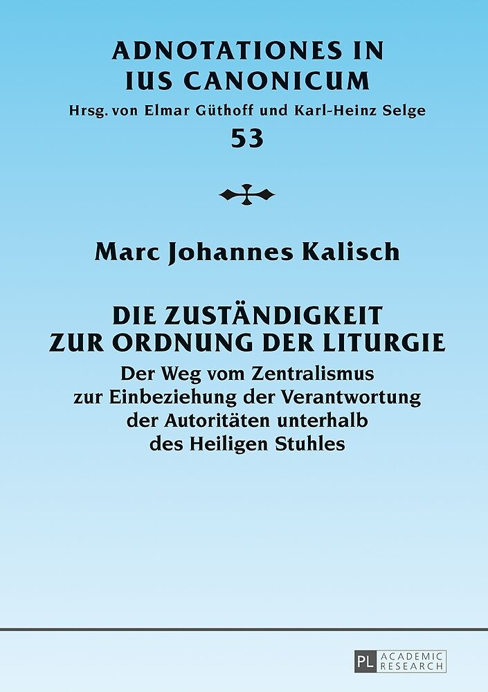 Das Werk behandelt die Frage der Zuständigkeit zur Ordnung der Liturgie aus einem kirchenrechtshistorischen Blickwinkel und zieht einen Vergleich zum geltenden Recht. Es stellt die Entwicklung der päpstlichen Reservation vor, bezieht das Recht des Diözesanbis...