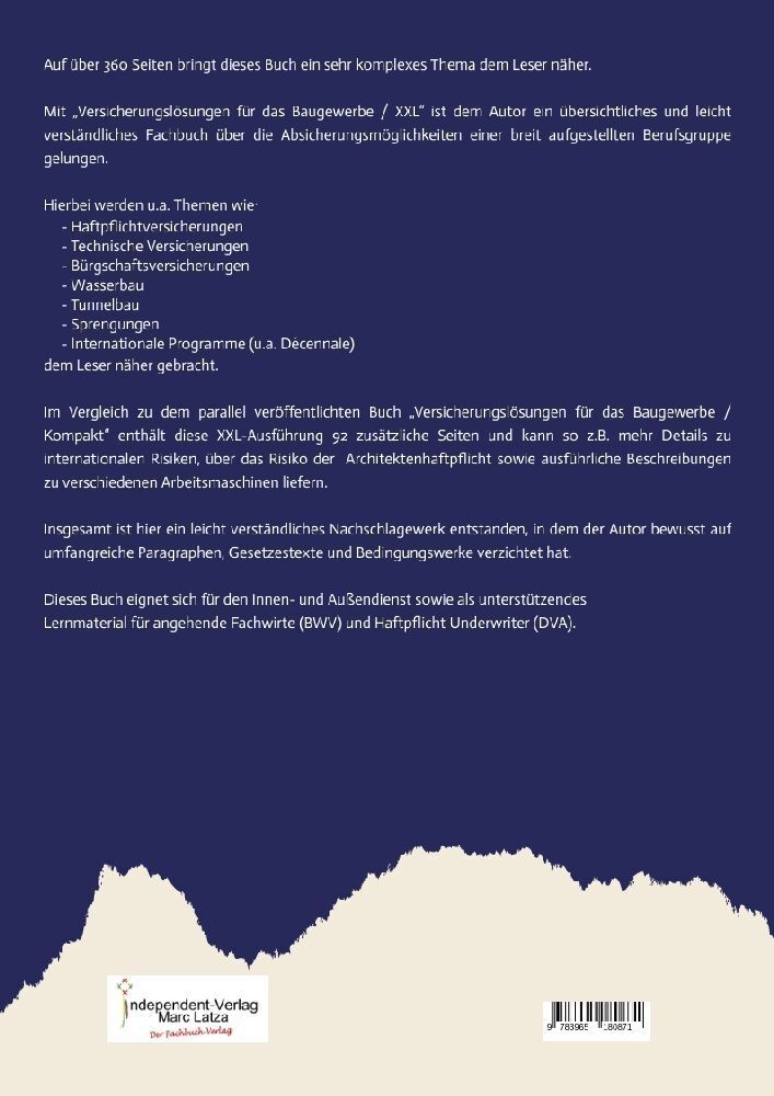 Auf über 360 Seiten bringt dieses Buch ein sehr komplexes Thema dem Leser näher. Mit Versicherungslösungen für das Baugewerbe / XXL ist dem Autor ein übersichtliches und leicht verständliches Fachbuch über die Absicherungsmöglichkeiten einer breit aufgestellte...