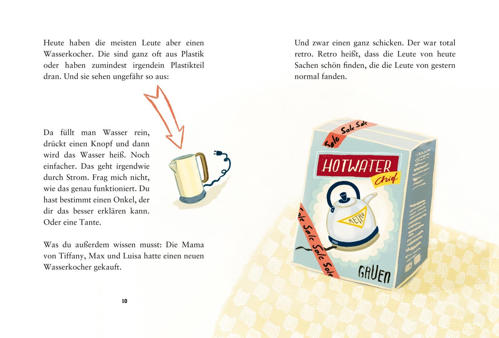In den Sommerferien kommen Oma und Opa wieder zum Aufpassen vorbei. Tiffany, Max und Luisa wissen nun auch, wer auf wen aufpassen soll. Und trotzdem lassen sie den Opa allein in die Küche. Tja, und der Opa stellt den supertollen neuen Retro-Wasserkocher auf d...
