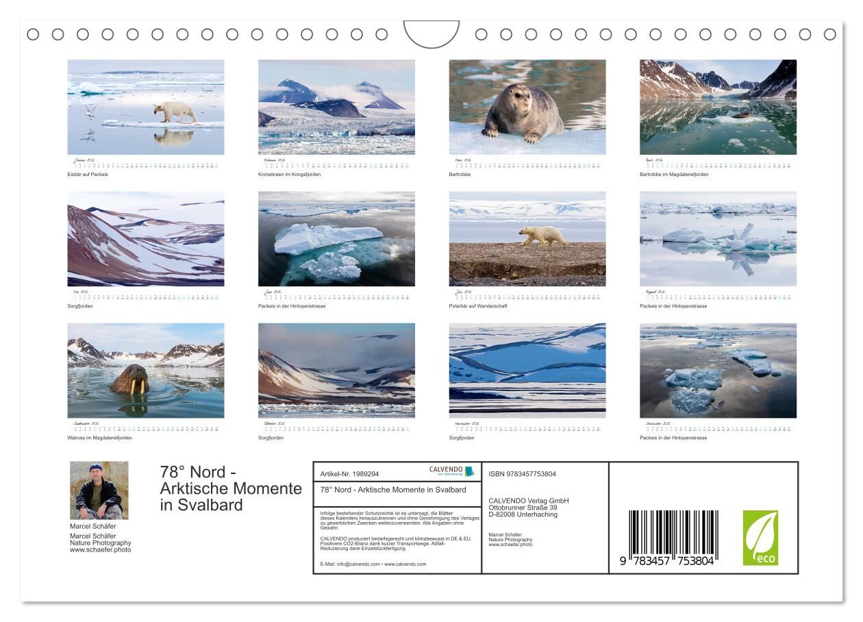 78° Nord - Arktische Momente in Svalbard (Wandkalender 2026 DIN A4 quer), CALVENDO Monatskalender