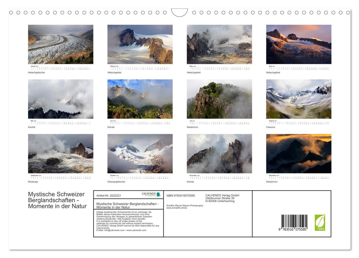 Selbst durch Nebel können wunderbare mystische Stimmungen entstehen, welche der Fotograf in den Schweizer Bergen erlebte und in diesem Kalender präsentiert. Erleben Sie unvergessliche Momente in der Natur unserer schweizer Berglandschaft. Jede einzelne Fotogra...