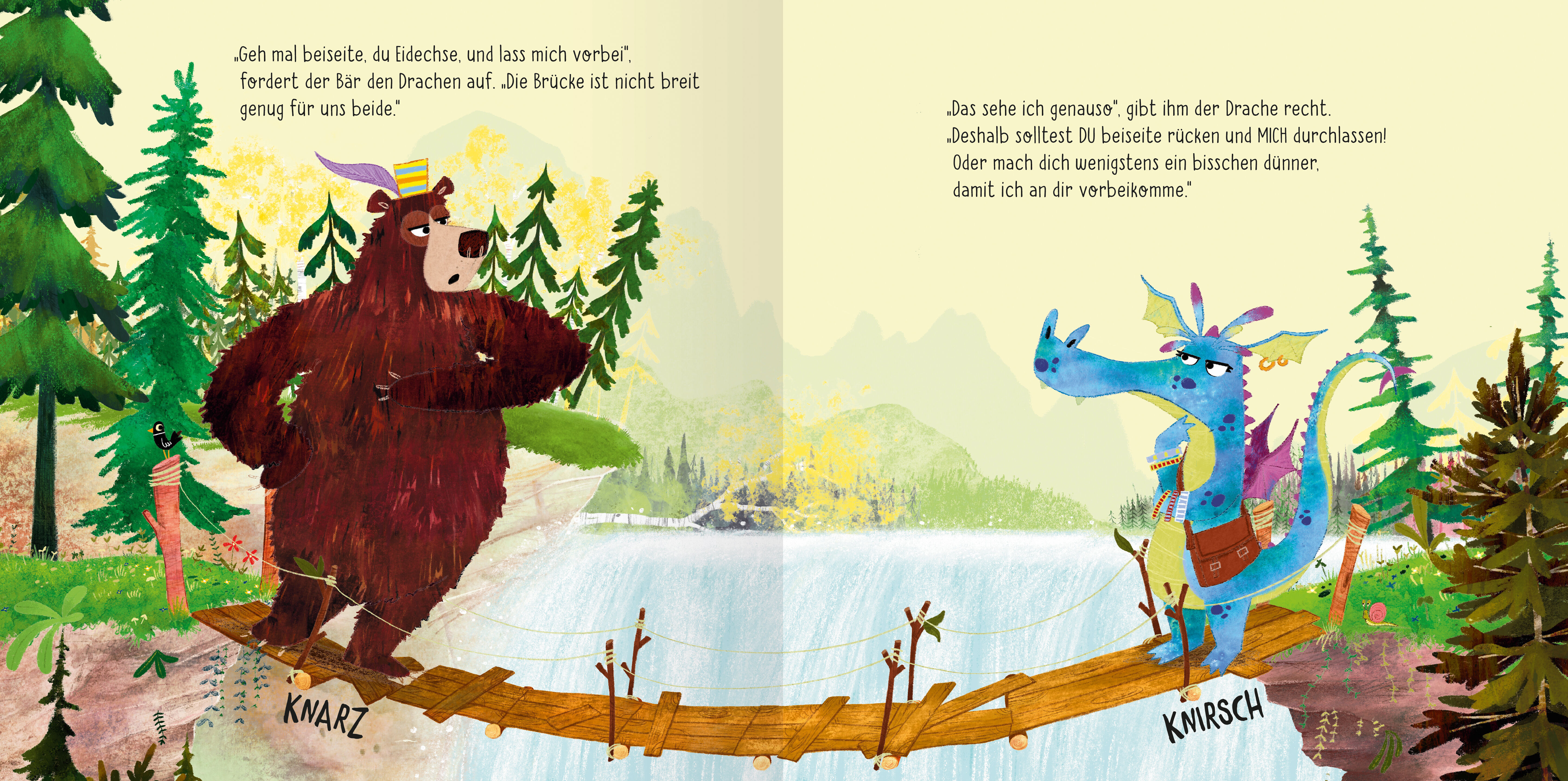 Hochmut kommt vor dem (Wasser-) Fall! Bär und Drache treffen sich an einer wackeligen Brücke. Bär auf der einen Seite, Drache auf der anderen. Unter ihnen eine tiefe Schlucht. Gleichzeitig können sie unmöglich über die Brücke gehen. Das stellt sie vor ein Prob...