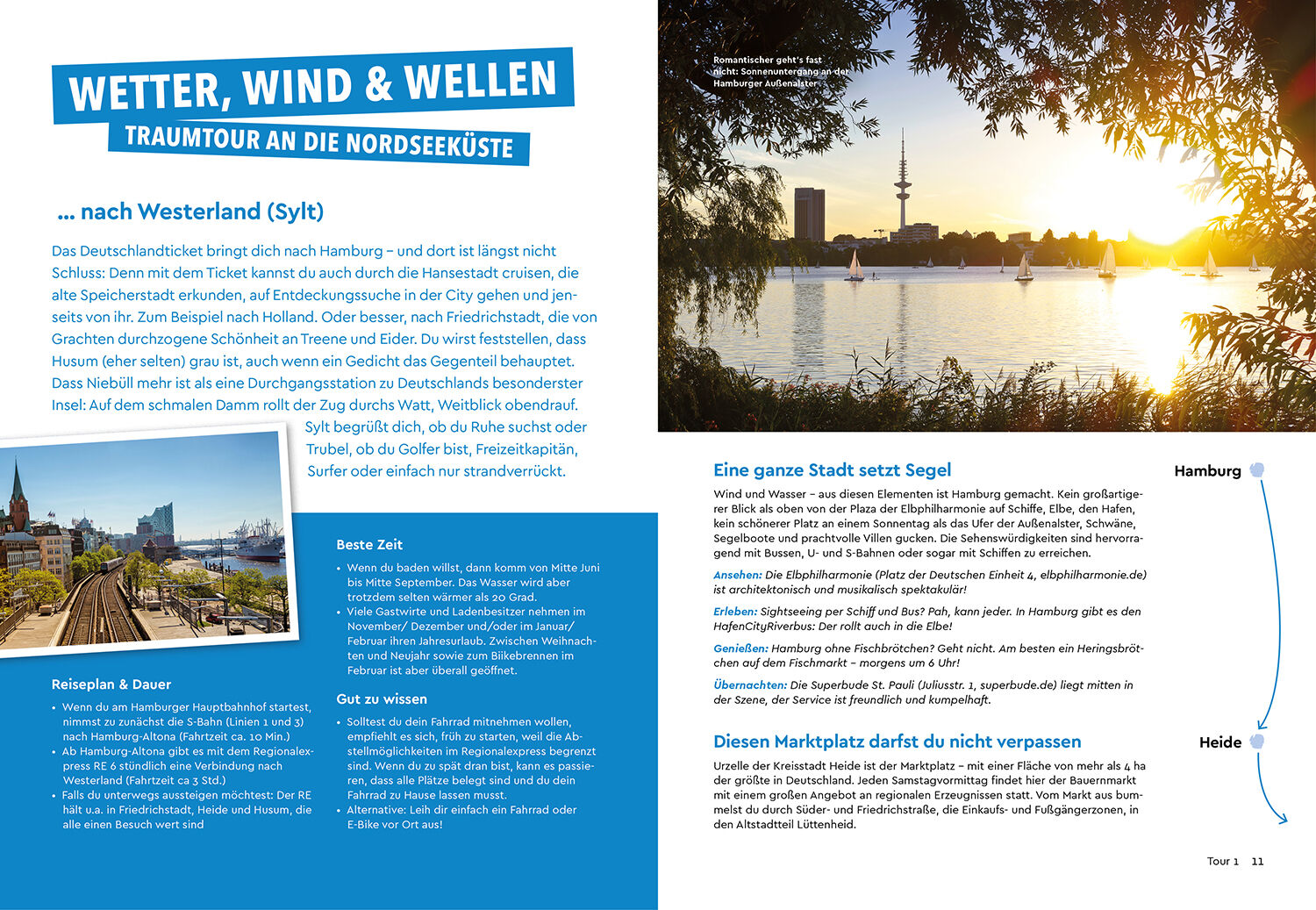 Mit dem Deutschlandticket unterwegs Erlebe die spannendsten Zugstrecken zwischen Nordsee und Alpen mit MARCO POLO! Ob für einen spontanten Tagesausflug, ein Wochenende oder länger entdecke die tollsten Routen in Deutschland und ins nahegelegene Ausland. Von B...