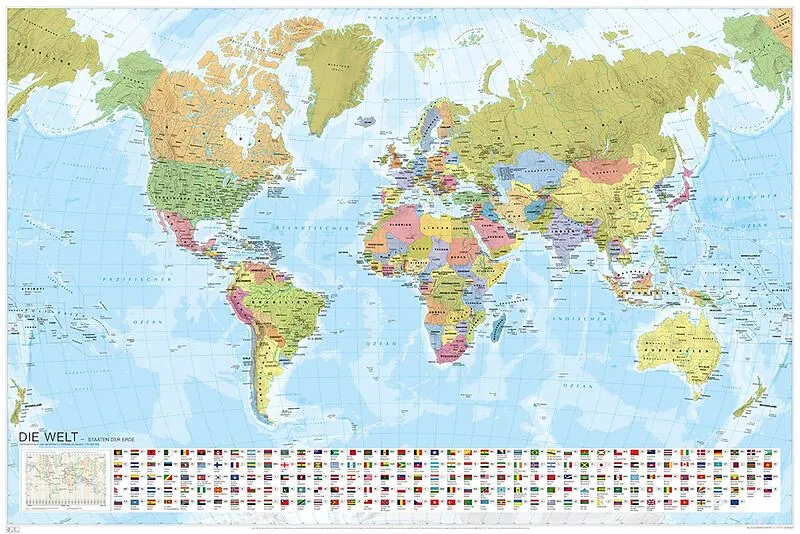 MARCO POLO Weltkarte - Staaten der Erde mit Flaggen, plano in Hülse