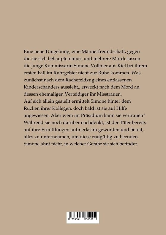 Eine neue Umgebung, eine Männerfreundschaft, gegen die sie sich behaupten muss und mehrere Morde lassen die junge Kommissarin Simone Vollmer aus Kiel bei ihrem ersten Fall im Ruhrgebiet nicht zur Ruhe kommen. Was zunächst nach dem Rachefeldzug eines entlassene...