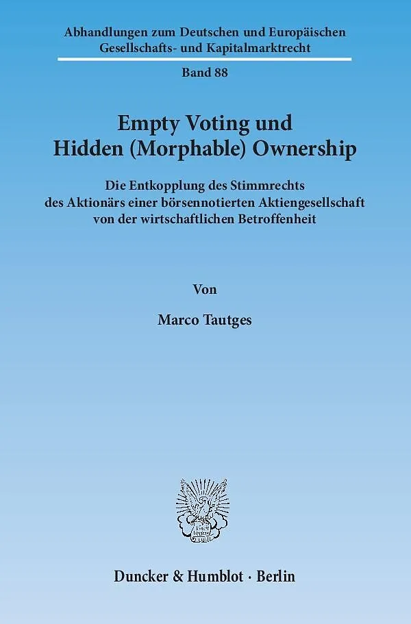 Die Arbeit behandelt zwei Ausprägungen der Entkopplung des Stimmrechts des Aktionärs von der wirtschaftlichen Betroffenheit: zum einen die (teilweise oder vollständige) Abgabe des wirtschaftlichen Risikos, welches der Aktionär grundsätzlich zu tragen hat, bei ...