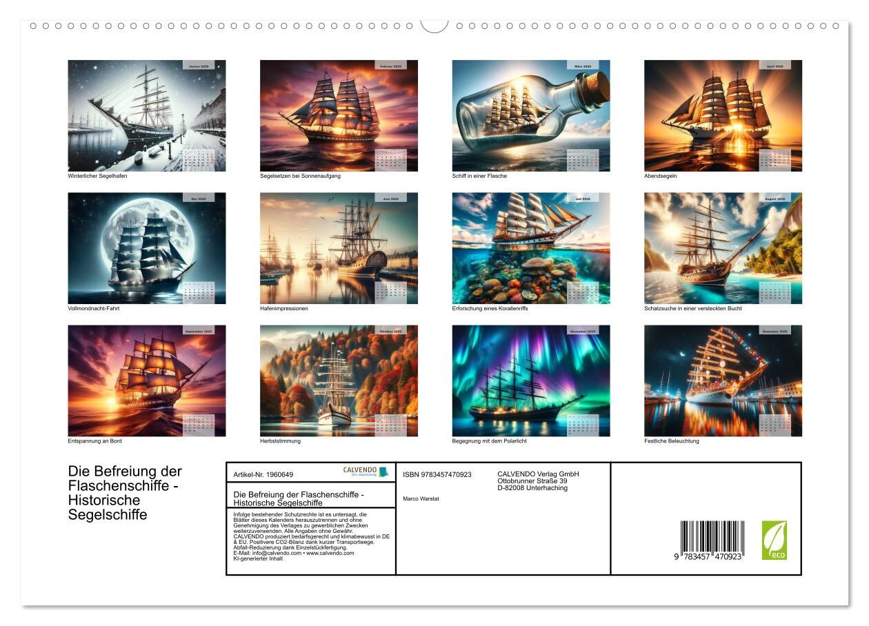 Entdecken Sie historische Segelschiffe wie nie zuvor. Unser einzigartiger Kalender entführt Sie in eine Welt der Fantasie, in der diese Flaschenschiffe die Freiheit erleben. Tauchen Sie ein in die faszinierende Geschichte und Magie dieser Modelle, die in aufwä...