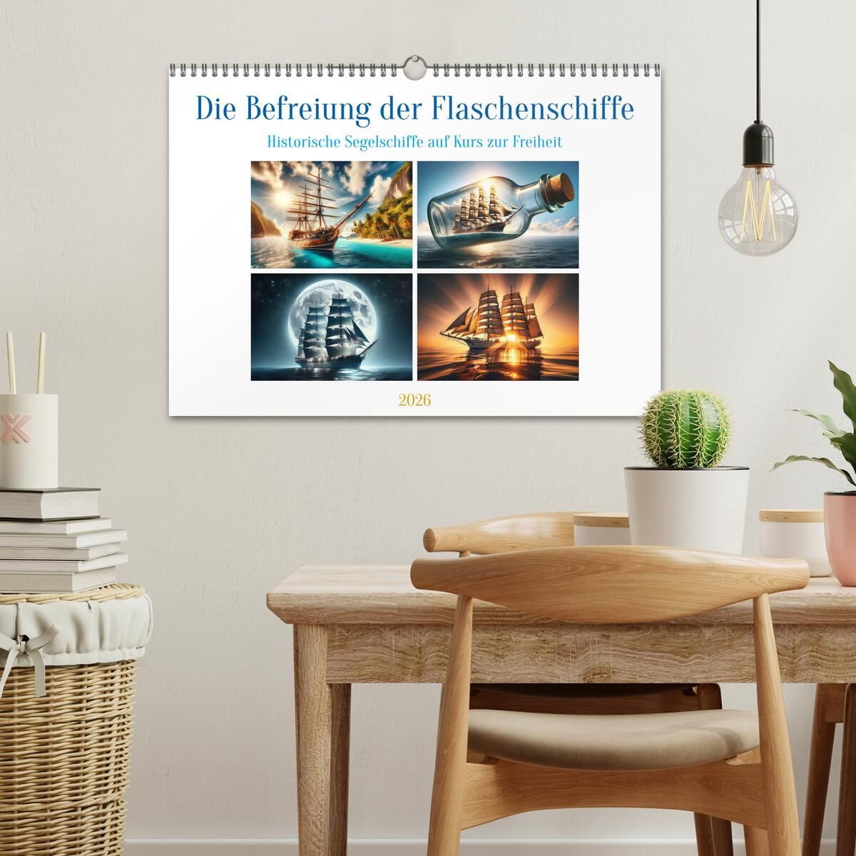 Entdecken Sie historische Segelschiffe wie nie zuvor. Unser einzigartiger Kalender entführt Sie in eine Welt der Fantasie, in der diese Flaschenschiffe die Freiheit erleben. Tauchen Sie ein in die faszinierende Geschichte und Magie dieser Modelle, die in aufwä...