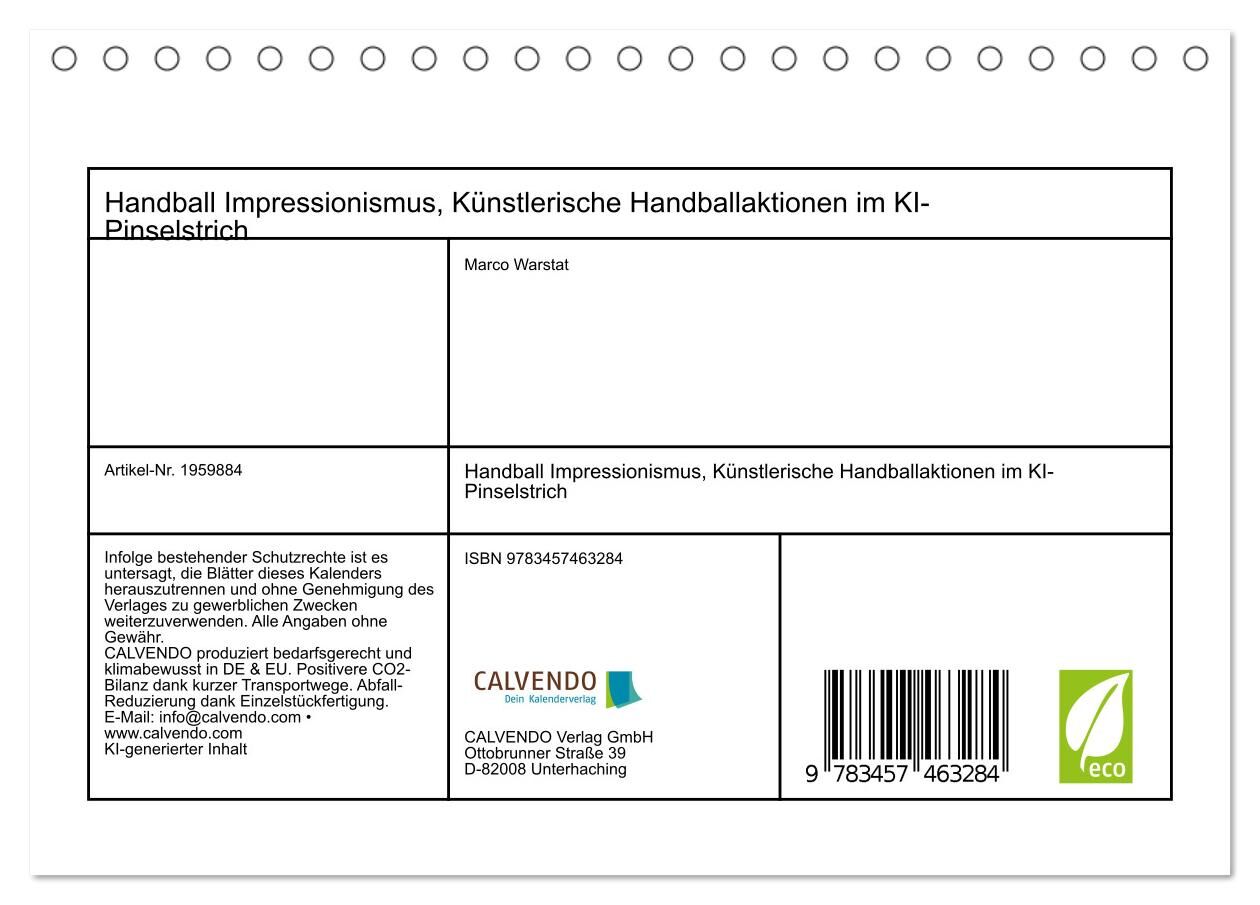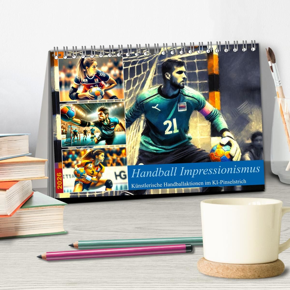 Handball Impressionismus, Künstlerische Handballaktionen im KI-Pinselstrich (Tischkalender 2026 DIN A5 quer), CALVENDO Monatskalender
