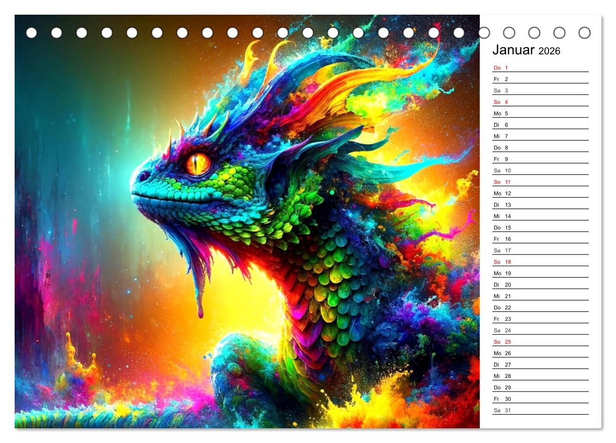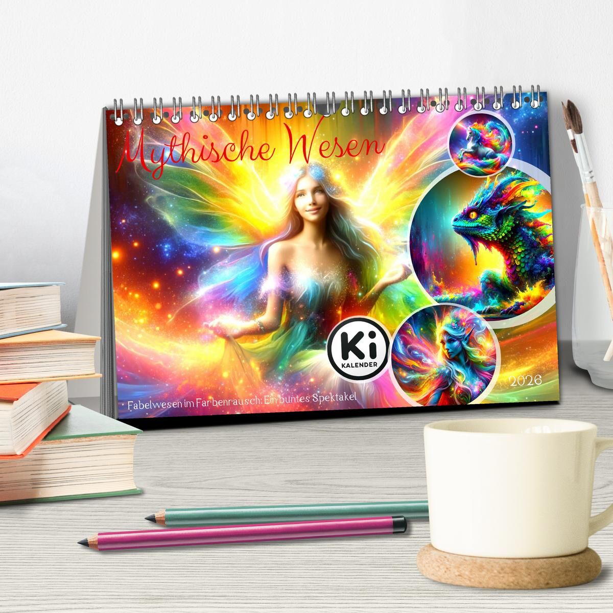 Mythische Wesen - Fabelwesen im Farbenrausch: Ein buntes Spektakel (Tischkalender 2026 DIN A5 quer), CALVENDO Monatskalender