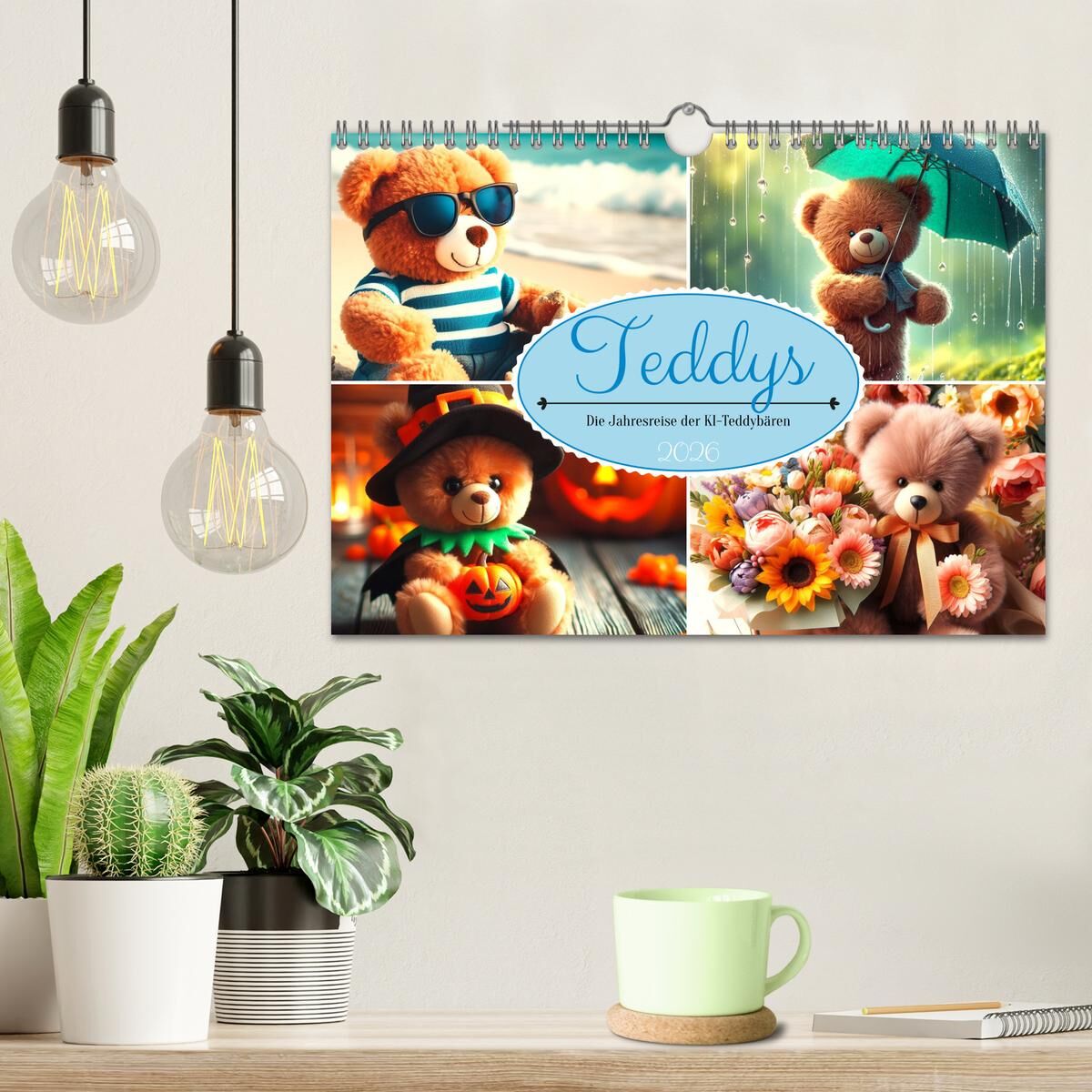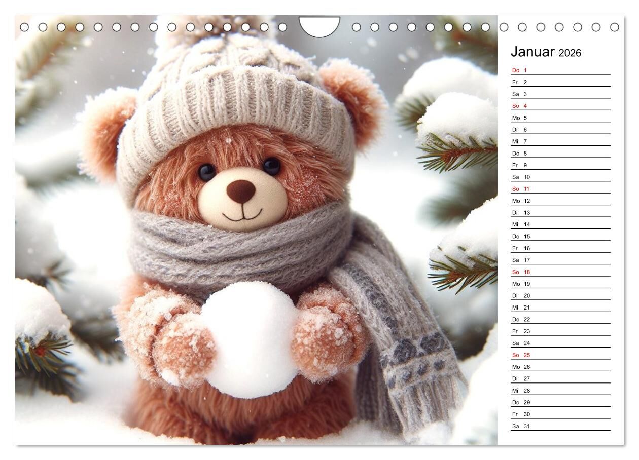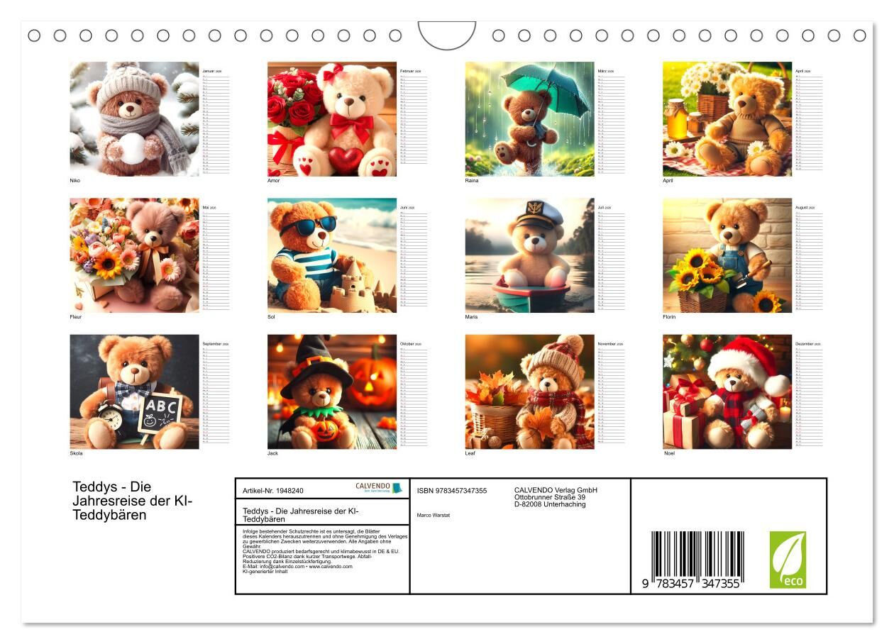 Teddys - Die Jahresreise der KI-Teddybären (Wandkalender 2026 DIN A4 quer), CALVENDO Monatskalender