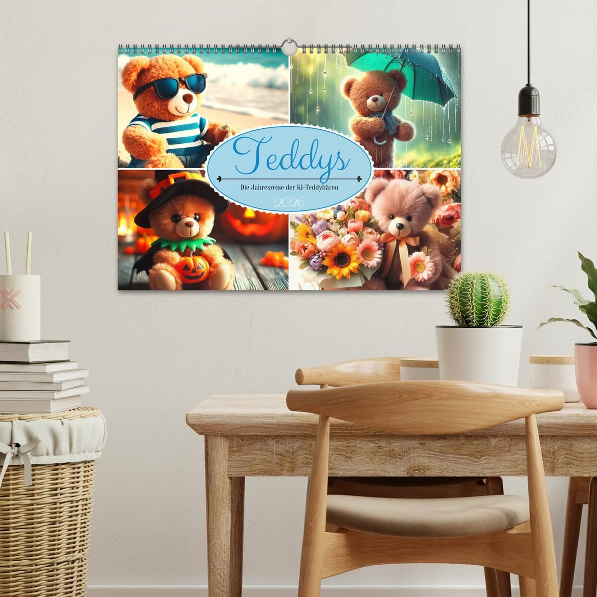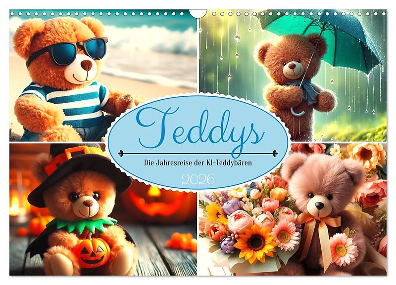 Teddys - Die Jahresreise der KI-Teddybären (Wandkalender 2026 DIN A3 quer), CALVENDO Monatskalender