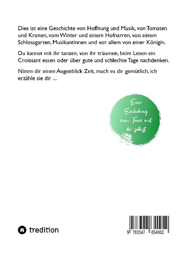 Dies ist eine Geschichte von Hoffnung und Musik, von Tomaten und Kronen, vom Winter und einem Hofnarren, von einem Schlossgarten, Musikantinnen und vor allem von einer Königin. Du kannst mit ihr tanzen, von ihr träumen, beim Lesen ein Croissant essen oder über...