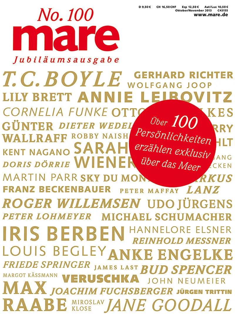 mare erscheint zum 100. Mal - das wollen wir mit einem besonderen Geburtstagsheft gebührend feiern. Über 100 Persönlichkeiten erzählen darin exklusiv und nur für uns über das Meer. Sie berichten über ihr eindruckvollstes Erlebnis am Meer, über ihren Lieblingso...