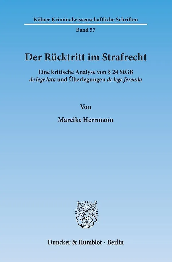 Die Autorin entwickelt ausgehend von der derzeitigen Fassung des § 24 StGB einen Reformvorschlag auf der Grundlage einer dualistischen Konzeption von Versuch und Rücktritt. Kernpunkte des Vorschlags sind hierbei die gegenüber dem geltenden Recht deutlichere He...