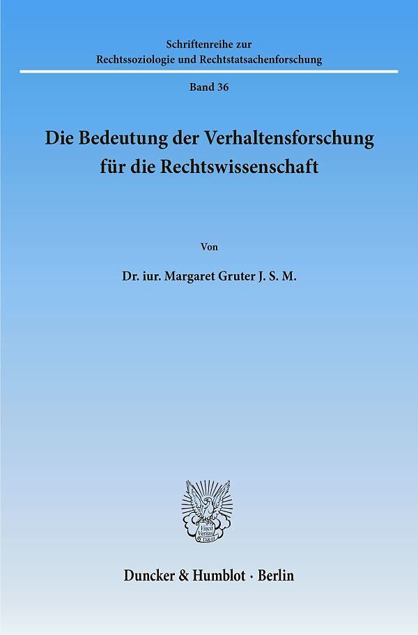 Die Bedeutung der Verhaltensforschung für die Rechtswissenschaft.