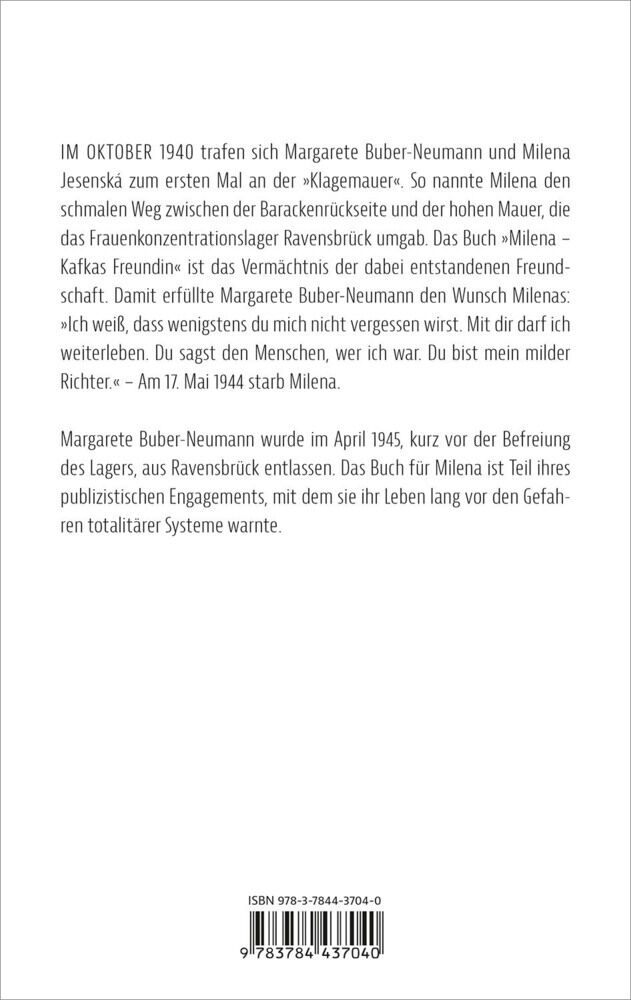 Im Oktober 1940 trafen sich Margarete Buber-Neumann und Milena Jesenská zum ersten Mal an der »Klagemauer«. So nannte Milena den schmalen Weg zwischen der Barackenrückseite und der hohen Mauer, die das Frauenkonzentrationslager Ravensbrück umgab. Das Buch »Mil...