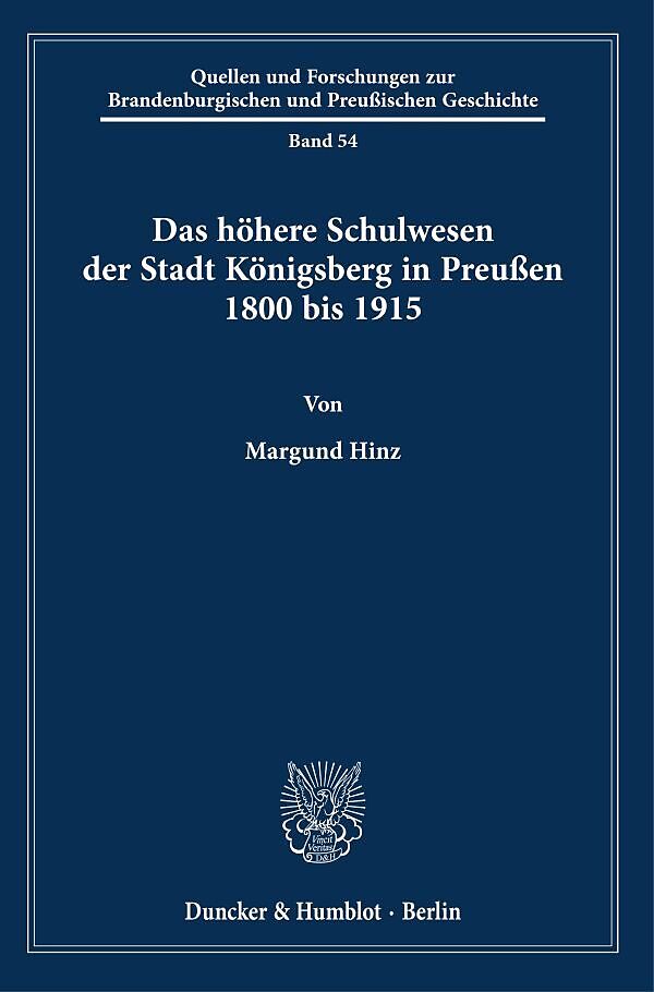 »The Higher Education System of the City of Königsberg in Prussia 1800 to 1915«: The study is the first to present the secondary school system of the capital and royal seat Königsberg in Prussia in the period from 1800 to 1915 against the background of striking supraregional events affecting the entire state of Prussia. The author explores the regional characteristics of the Gymnasien as well as the development of the Realanstalten and the higher education of girls. Among the eight schools included, the Königliches Friedrichs-Kollegium occupies a prominent position because of its model character for all of Prussia. Wilhelm von Humboldt's activities in Königsberg, which were fundamental for the school reform from 1809 onwards, and the Königsberg school plan he developed there are dealt with in detail by the author. In accordance with Humboldt's goal of equal status for the subjects Latin and Greek, mathematics and history, these and the corresponding teaching subjects as well as research at Königsberg University are considered in detail. A separate chapter is devoted to the reception of Humboldt's school concept in the Baltic provinces.