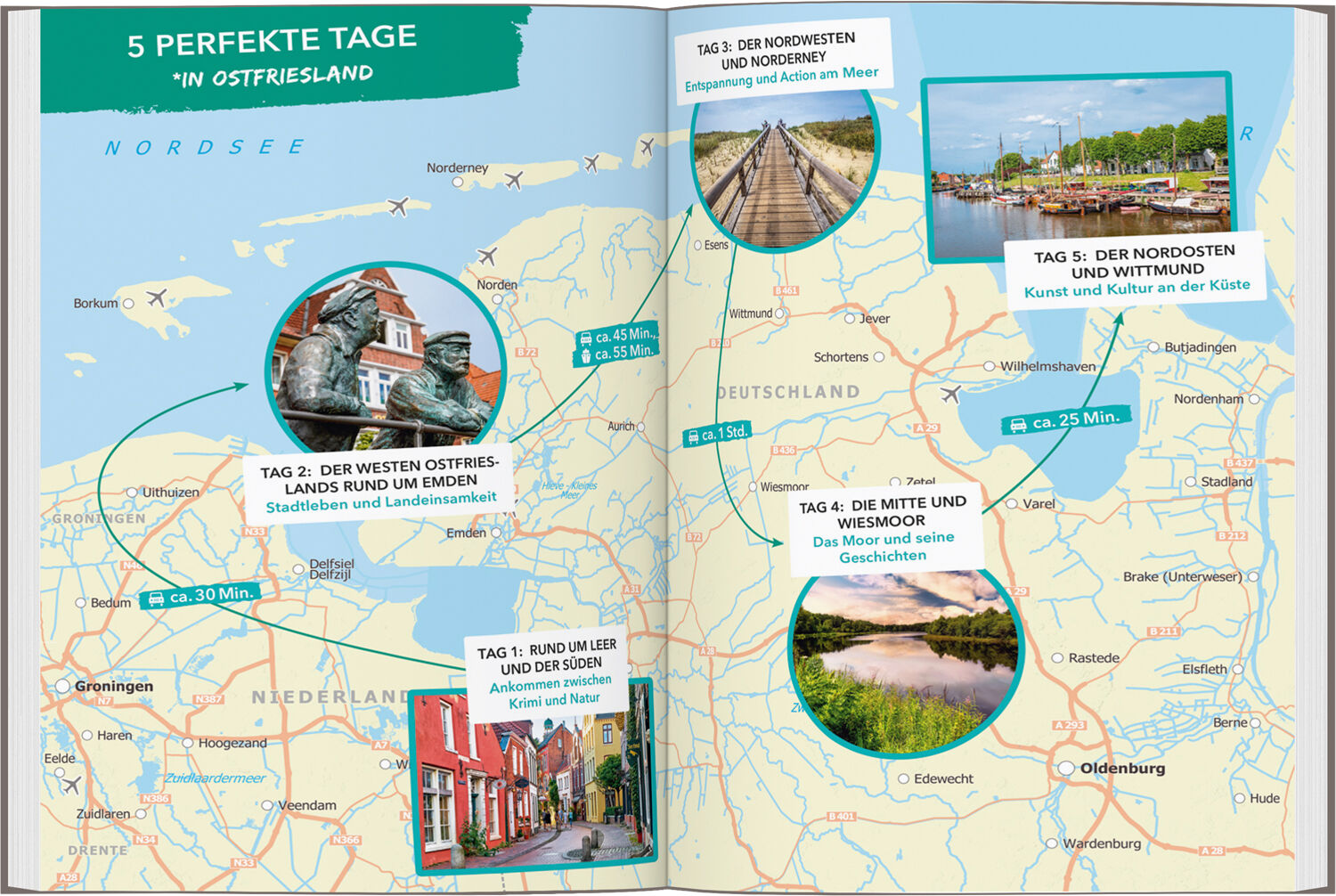 Mit dem MARCO POLO OUTDOOR GUIDE Reiseführer Ostfriesland und Ostfriesische Inseln die Nordseeküste erkunden Eine Spaziergangs-Zeitreise machen im Fischerörtchen Ditzum, auf Borkum von Leuchtturm zu Leuchtturm radeln oder Wasserbüffel beobachten bei einer Boo...