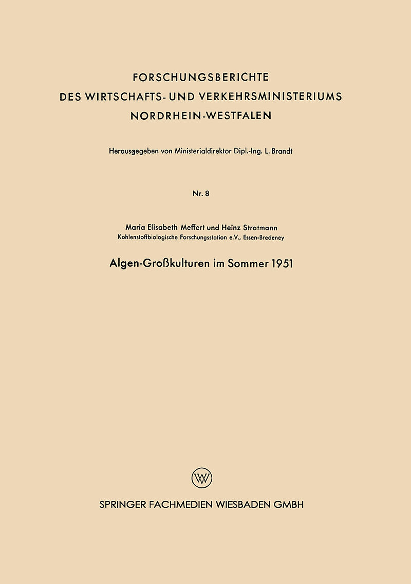 Inhalt Gliederung.- Allgemeine Übersicht.- Versuchsanlagen und Kulturbedingungen.- Großkulturen.- Versuchskulturen.- Nährmedien.- Begasung.- Algen.- Temperatur.- Licht.- Verunreinigungen.- Handhabung und Verlauf der Großkulturen.- Ausbeuten der Großkulturen im...